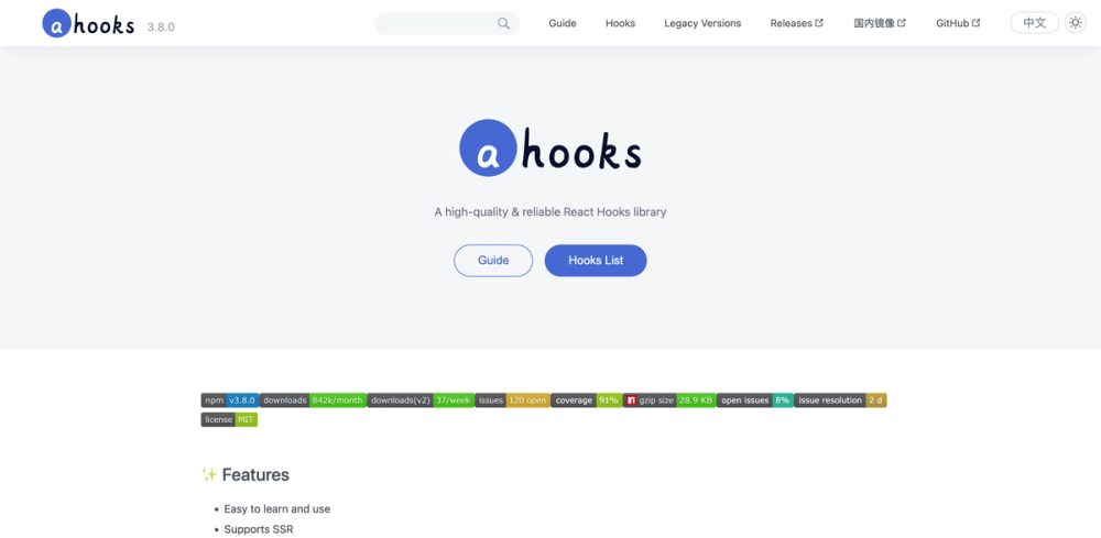 A high-quality & reliable React Hooks library